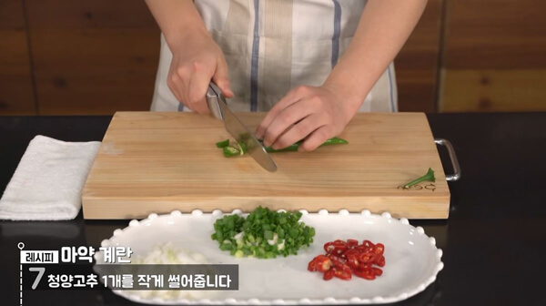 ´Þ°¿ÀÌ Âù¹°¿¡¼ ½Ä´Â µ¿¾È °è¶õÀåÀÇ ÇÙ½É, ¸À°£ÀåÀ» ¸¸µç´Ù. °¡Àå ¸ÕÀú, ¾çÆÄ 1/4 Å丷À» ÀÛ°Ô ¼Û¼Û ½ä¾îÁØ´Ù. ±×´ÙÀ½, ÂÊÆÄ 2´ëµµ ¼Û¼Û¼Û °°Àº Å©±â·Î ½ä¾îÁØ´Ù.