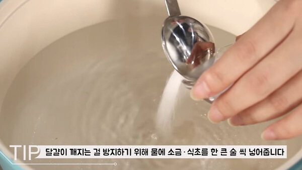 ¸Ç óÀ½¿¡ »î°í, Âù¹°¿¡ ½ÄÇû´ø ´Þ°¿ÀÇ ²®µ¥±â¸¦ ¿¹»Ú°Ô ¹þ±ä´Ù. ±× ÈÄ Àß ÁغñµÈ ¸À °£Àå¿¡ ´Þ°¿À» ³Ö¾îÁØ´Ù.