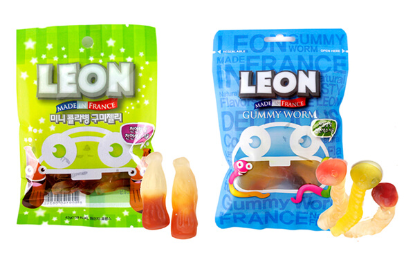 ÇÁ¶û½º ÀüÅë Á©¸® ºê·£µå '·¹¿Ë(LEON)'Àº 1892³âºÎÅÍ 100³â ÀÌ»óÀÇ ¿ª»ç¸¦ ÀÚ¶ûÇÏ´Â Á©¸®´Ù. ÇÁ¶û½ºÆÇ ¿Õ²ÞƲÀ̶ó ºÒ¸®´Â '»ç¿ì¿ö ¿ú(sour worm)'Á©¸®´Â ·¹¿ËÀ» ´ëÇ¥ÇÏ´Â Á¦Ç°À¸·Î, ¸ð¾çÀÌ ´Ù¼Ò µ¶Æ¯ÇÏ°Ô ¸Ó¸®¿Í ¸öÅëÀÌ ±¸ºÐµÈ Áö··ÀÌ ¸ð¾çÀ¸·Î »õÄÞ´ÞÄÞÇÑ °¡·ç°¡ ¹¯¾îÀÖ´Ù. Àΰø»ö¼Ò, ÀΰøÂøÇâ·á°¡ µé¾î°£ ´Ù¸¥ Á©¸®¿¡ ºñÇØ õ¿¬ °úÀÏÇâ°ú õ¿¬ ³óÃà Àç·á¸¦ »ç¿ëÇØ ¸ÀÀ» ³» ±íÀº °úÀÏÇâÀ» ´À³¥ ¼ö ÀÖ´Ù. Á¾·ù´Â ÃÑ 5°¡Áö·Î »ç¿ì¾î ¿ú, ±¸¹Ì º£¾î, ±¸¹Ì ¿ú, ¹Ì´Ï ¹Í½º, ¹Ì´Ï Äݶóº´ÀÌ ÀÖ°í, ÁöÆÛ¹éÀ¸·Î Æ÷ÀåµÇ¾î ÈÞ´ë¿Í º¸°üÀÌ Æí¸®ÇÏ´Ù.