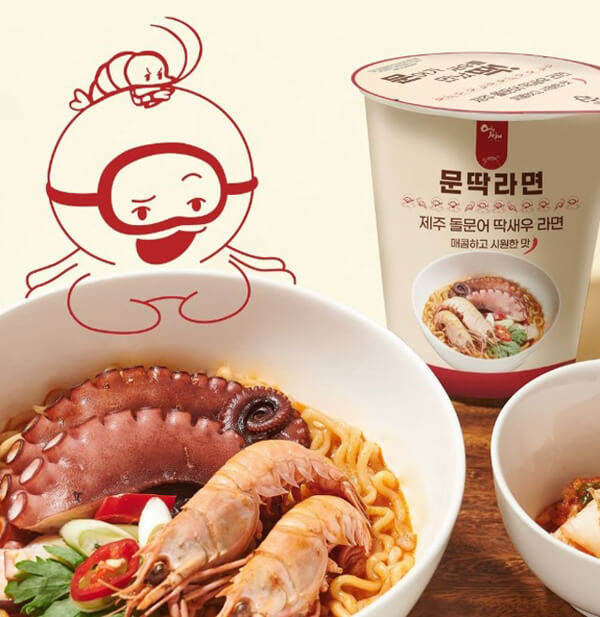 ¡®¹®µü¶ó¸é¡¯Àº Á¦ÁÖ ¹Ù´ÙÀÇ ³»À½À» ´ãÀº ÄŶó¸éÀÌ´Ù. ½Ì½ÌÇÑ Á¦ÁÖ µ¹¹®¾î¿Í Á¦ÁÖ µü»õ¿ì¸¦ Ȱ¿ëÇÑ Á¦Ç°ÀÌ´Ù. Á¦ÁÖ»ê µü»õ¿ì´Â ³óÃàµÅ ¾×±â½º·Î À¯¼º ¼öÇÁ·Î Ȱ¿ëµÆÀ¸¸ç, Â̱êÇÑ ½Ä°¨°ú ¾Ã´Â ¸ÀÀÌ ÀÏǰÀÎ µ¹¹®¾î´Â ¾ãÀº ¾î¹¬ÀÌ µÅ ¹®µü¶ó¸é¿¡ µé¾î°¡ ÀÖ´Ù. Á¦ÁÖ ¹Ù´Ù Çâ °¡µæ ¼öÇÁ¸¦ ³Ö°í, ¼±¿¡ ¸ÂÃç ¹°À» ºÎ¾îÁØ ÈÄ 4ºÐ¸¸ ±â´Ù¸®¸é ÄŶó¸éÀÌ ¿Ï¼ºµÈ´Ù. À¯¼º ¼öÇÁ´Â ÀÔ¸À¿¡ ¸ÂÃç, Á¶¸®°¡ ³¡³ ÈÄ ³ÖÀ¸¸é µÈ´Ù.