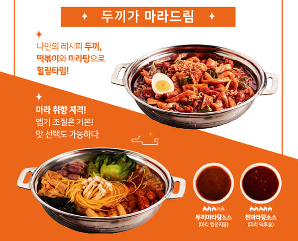 ¶±ººÀÌ ¹«ÇÑ ¸®ÇÊ ÇÁ·£Â÷ÀÌÁî µÎ³¢´Â ¸¶¶ó ¼Ò½º µî ½ÄÀç·á ¶óÀξ÷À» °ÈÇß´Ù. À̹ø ¶óÀξ÷ °È´Â ¸¶¶ó ¼Ò½º¸¦ Áß½ÉÀ¸·Î ÀÌ·ïÁ³´Ù. ¸¶¶ó ÀÔ¹®ÀÚºÎÅÍ ¸¶¶ó ´öÈıîÁö ÃëÇâ¿¡ ¸ÂÃâ ¼ö ÀÖ´Â 2Á¾ÀÇ ¼Ò½º¸¦ Á¦°øÇÑ´Ù. ¸¶¶óÀÇ ÁÖ¿ä ½ÄÀç·áÀΠǪÁÖ, Áß±¹´ç¸é, ºÐ¸ðÀÚ, ¿Á¼ö¼ö¸é, û°æÃ¤, »õ¾Ë¸¸µÎ, ¿ìµ¿°ï¾à, ¿À¡¾î¿ÏÀÚ µîµµ Ãß°¡Çß´Ù. ¾Æ¿ï·¯ ¸¶¶óÅÁ°ú Àß ¾î¿ï¸®´Â ²ã¹Ù·Î¿ì, Ä¡Á µîµµ ÇÕ¸®ÀûÀÎ °¡°ÝÀ¸·Î ³»³õ¾Ò´Ù.